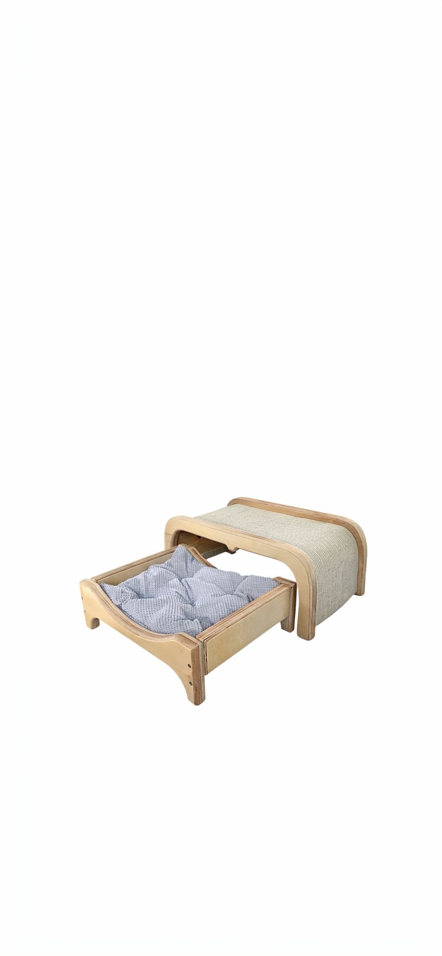 Bezpieczeństwo Kociąt: Wszystkie krawędzie, zarówno w mostku, jak i w legowisku, zostały mocno i starannie zaokrąglone, aby wyeliminować ryzyko urazów podczas dynamicznych zabaw najmłodszych kotów.