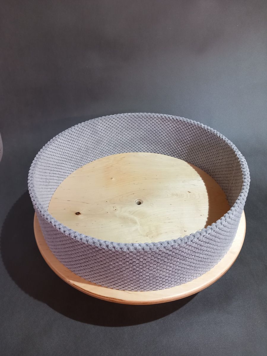 legowisko rozeta o średnicy 50cm wewnątrz wymiar zewnętrzny 55cm wysokość rantu 12cm . Poduszka nie jest w zestawia .