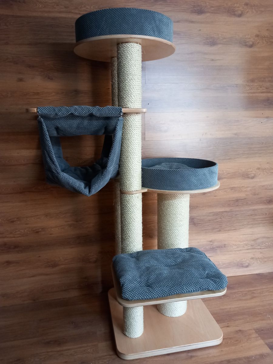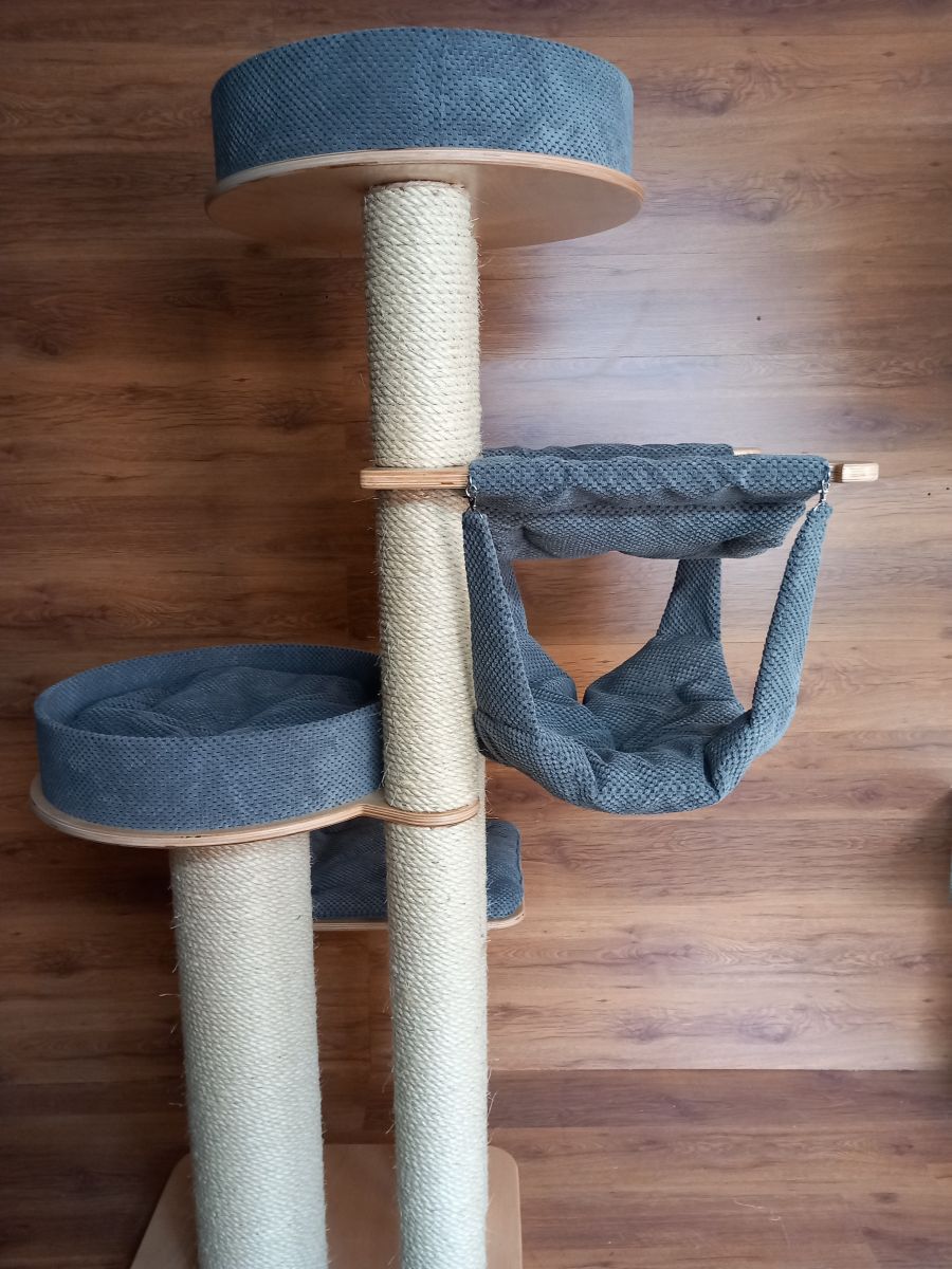 Opis produktuDrapak posiada grubą szeroką podstawę co czyni go bardzo stabilnym. Waga całego drapaka po złożeniu ponad 42kg. Tuleje są z kartonu o podwyższonej wytrzymałości . Grubości całej tulei razem z liną fi 12. Długość tulei też ma znaczenie ze względu na możliwość wydrapania się dla dużego kota.
