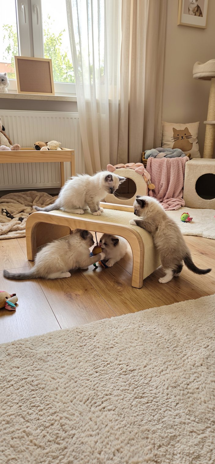 Bezpieczeństwo: Zaokrąglone krawędzie, bezpieczne dla najmłodszych kociąt.