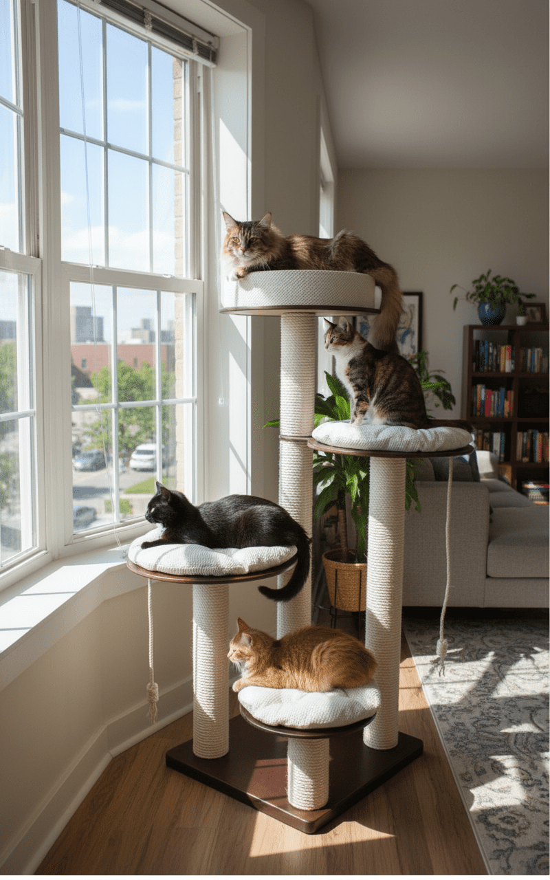 Idealny dla kotów, które kochają skakać i wspinać się po zróżnicowanych poziomach.