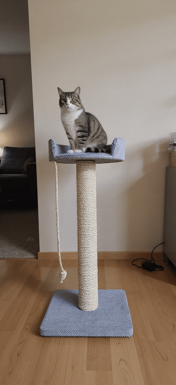 • Metrowa strefa drapania (100 cm): Większość kotów uwielbia wbijać pazury wysoko i ciągnąć w dół, rozciągając przy tym całe ciało. Ten model posiada jednolitą tuleję o długości 100 cm. Brak łączeń w połowie słupa pozwala na płynny ruch i maksymalne wyciągnięcie kręgosłupa, co jest kluczowe dla kondycji fizycznej kota.