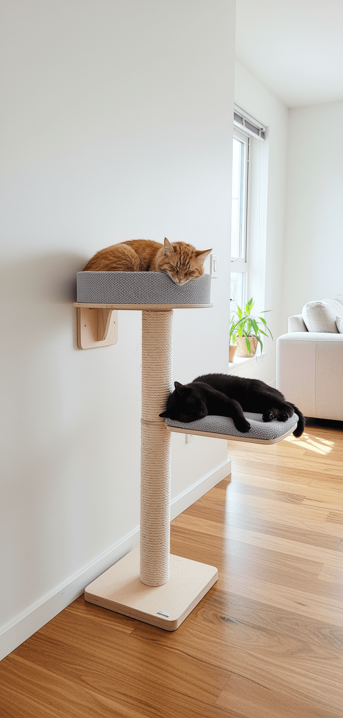 Innowacyjny drapak przyścienny (125 cm) o kompaktowej podstawie, idealny do małych mieszkań. Najważniejsze cechy: