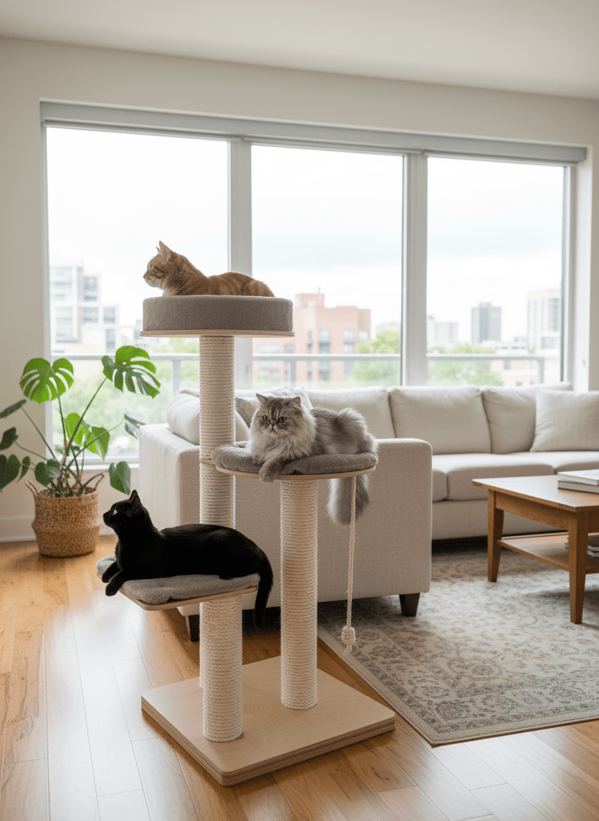 Drapak Wolnostojący 140 cm – „Comfort Stretch” (Słup 80 cm + Okrągła Półka)