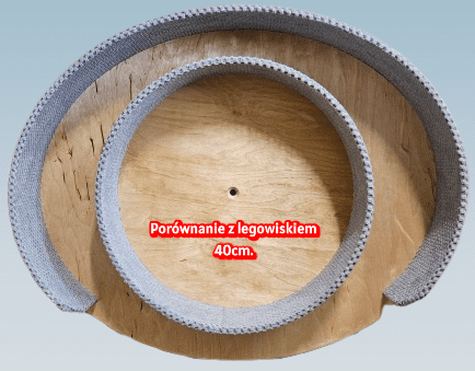 Owalna Sofa (74×60 cm): To serce tego drapaka. Wielkie, owalne legowisko o wymiarach zewnętrznych 74×60 cm (wewnątrz 66×57 cm) z obniżonym wejściem. Jego rozmiar pozwala dorosłemu Maine Coonowi na całkowite wyciągnięcie się, a w przypadku mniejszych ras – na wspólną drzemkę dwóch kotów w objęciach.
