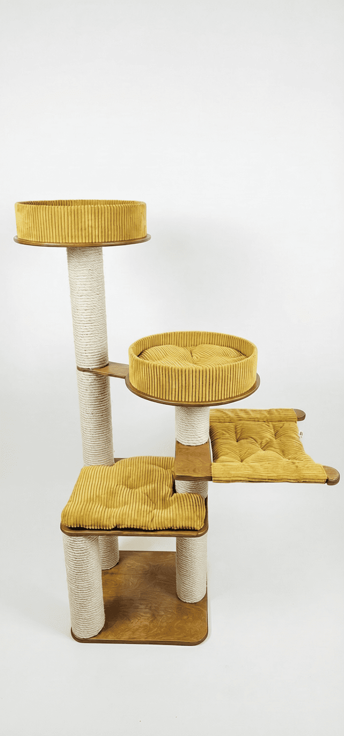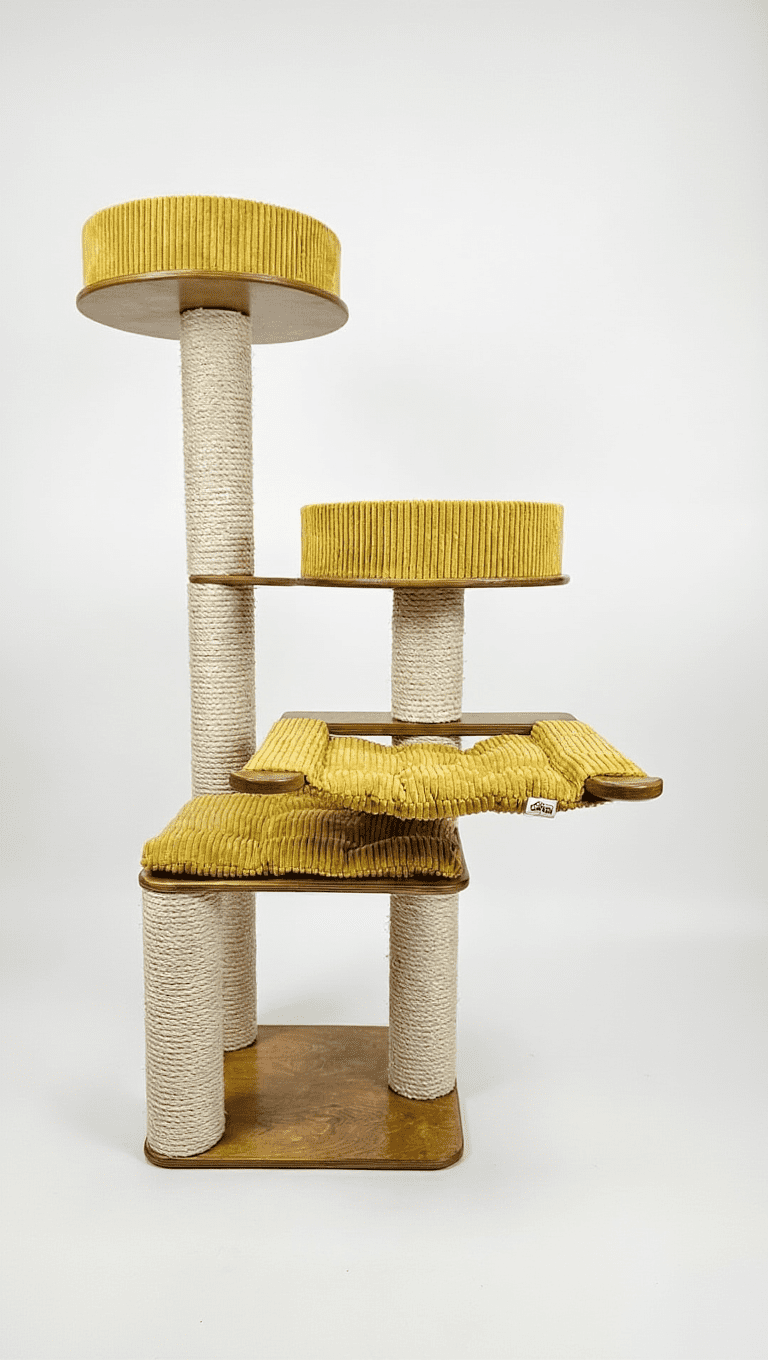 Model ten to odpowiedź na potrzeby wymagających opiekunów, którzy szukają mebla estetycznego, trwałego i – co najważniejsze – funkcjonalnego dla więcej niż jednego kota. Wysokość 160 cm sprawia, że jest to doskonały punkt obserwacyjny, dominujący nad salonem, a zastosowanie dwóch legowisk na szczycie rozwiązuje odwieczne kocie dylematy hierarchiczne.