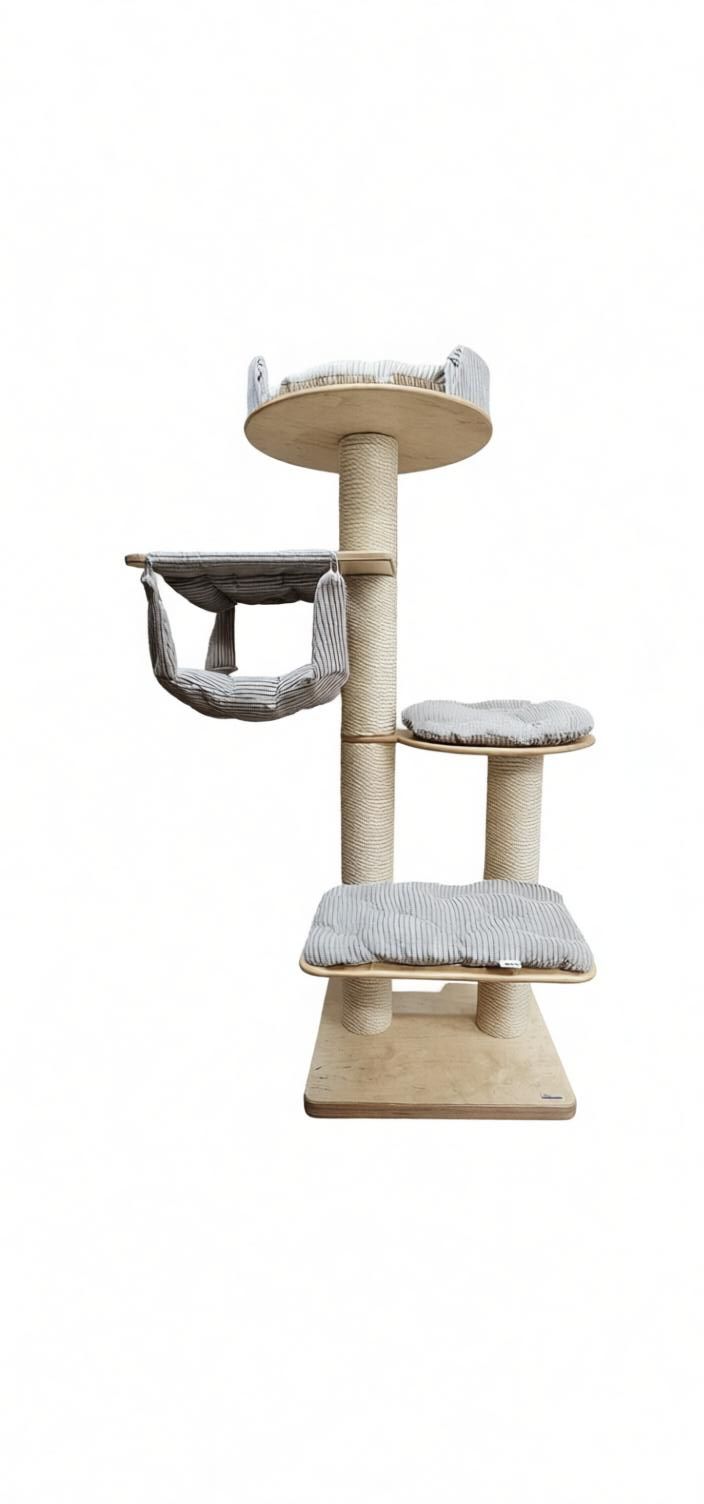 Model 2603 to konstrukcja, która łączy cechy wysokiej wieży obserwacyjnej z luksusową strefą wypoczynku. Zaprojektowany z myślą o kotach, które kochają miękkie, zapadające się legowiska, ale potrzebują też solidnego oparcia do wspinaczki. Dzięki wysokości 175 cm, drapak ten pozwala kotom kontrolować całe pomieszczenie z góry, zaspokajając ich naturalny instynkt terytorialny.
