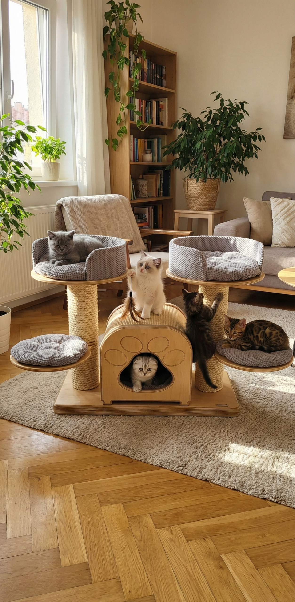 Szeroki Drapak Przedszkole 60cm – Symetryczny Plac Zabaw dla Kociąt