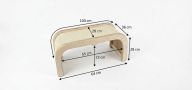 Element 1: Wielofunkcyjny Mostek-Drapak Łukowa konstrukcja pokryta jest wysokiej jakości wykładziną sizalową o długości aż 100 cm (mierzone po łuku), zapewniając doskonałą powierzchnię do pielęgnacji pazurów. Jednocześnie wysoki prześwit pod mostkiem tworzy naturalny tunel i tor przeszkód, zachęcający kocięta do aktywności ruchowej.