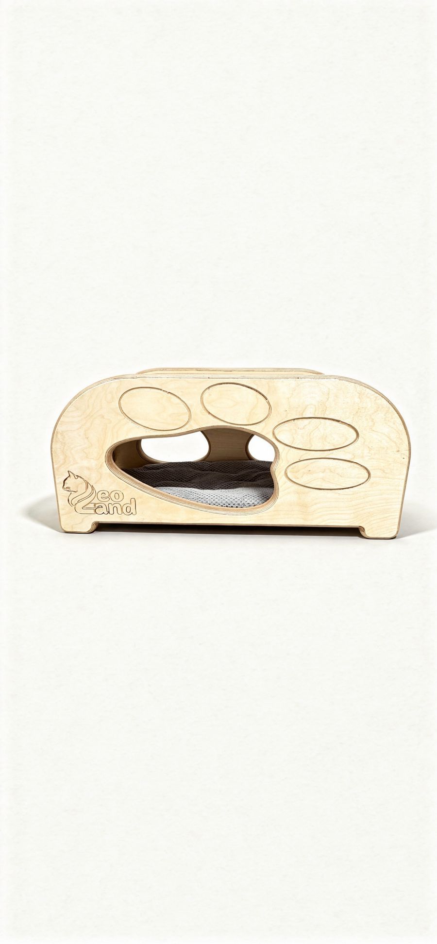 Nieprzewracalna konstrukcja Zastosowanie sklejki o grubości 3,5 cm sprawia, że mebel waży ponad 10 kg. Gwarantuje to 100% stabilności – budka nie ugnie się pod ciężarem kota i nie zostanie przewrócona w trakcie biegania.