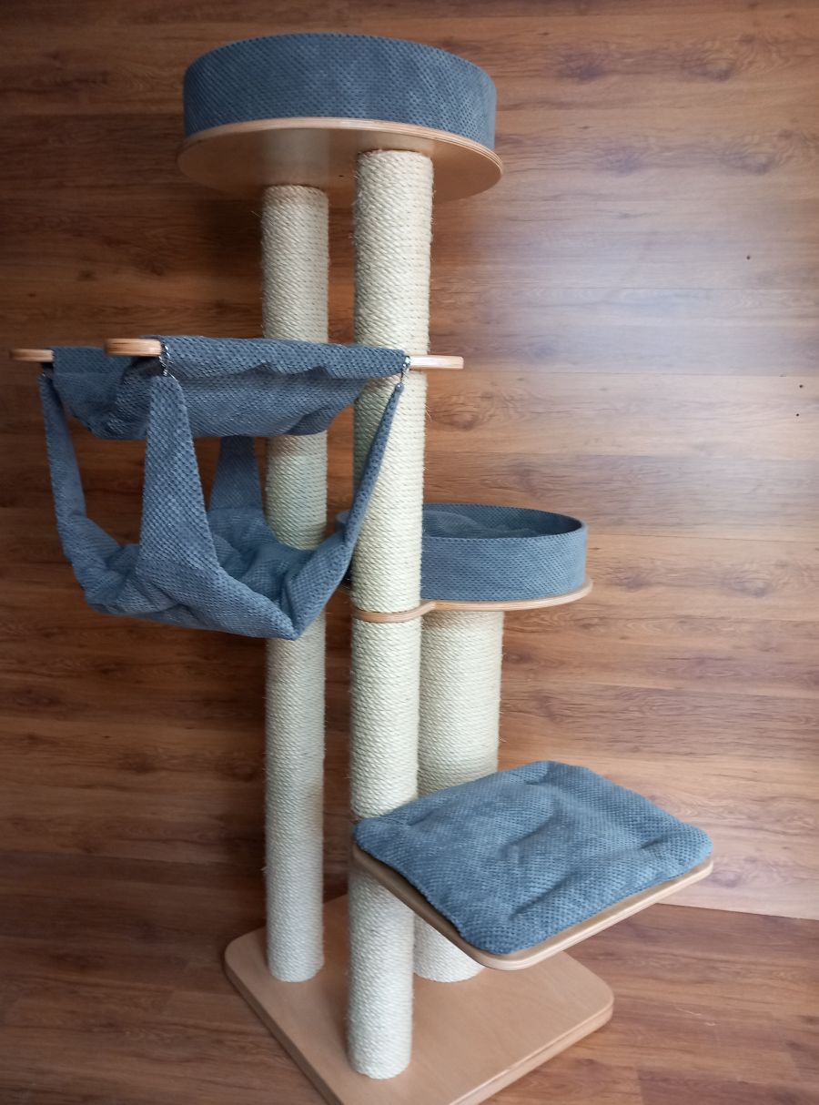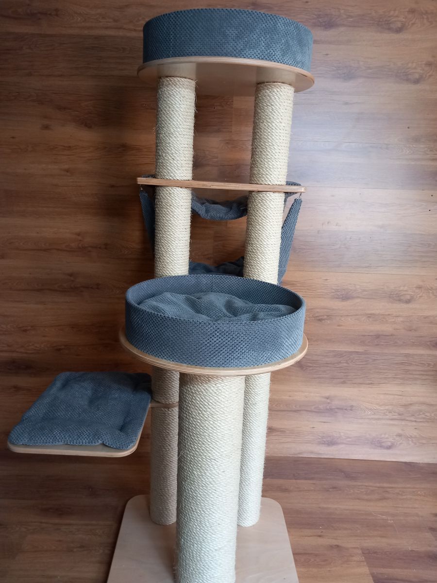 Opis produktuDrapak posiada grubą szeroką podstawę co czyni go bardzo stabilnym. Waga całego drapaka po złożeniu ponad 42kg. Tuleje są z kartonu o podwyższonej wytrzymałości . Grubości całej tulei razem z liną fi 12. Długość tulei też ma znaczenie ze względu na możliwość wydrapania się dla dużego kota.